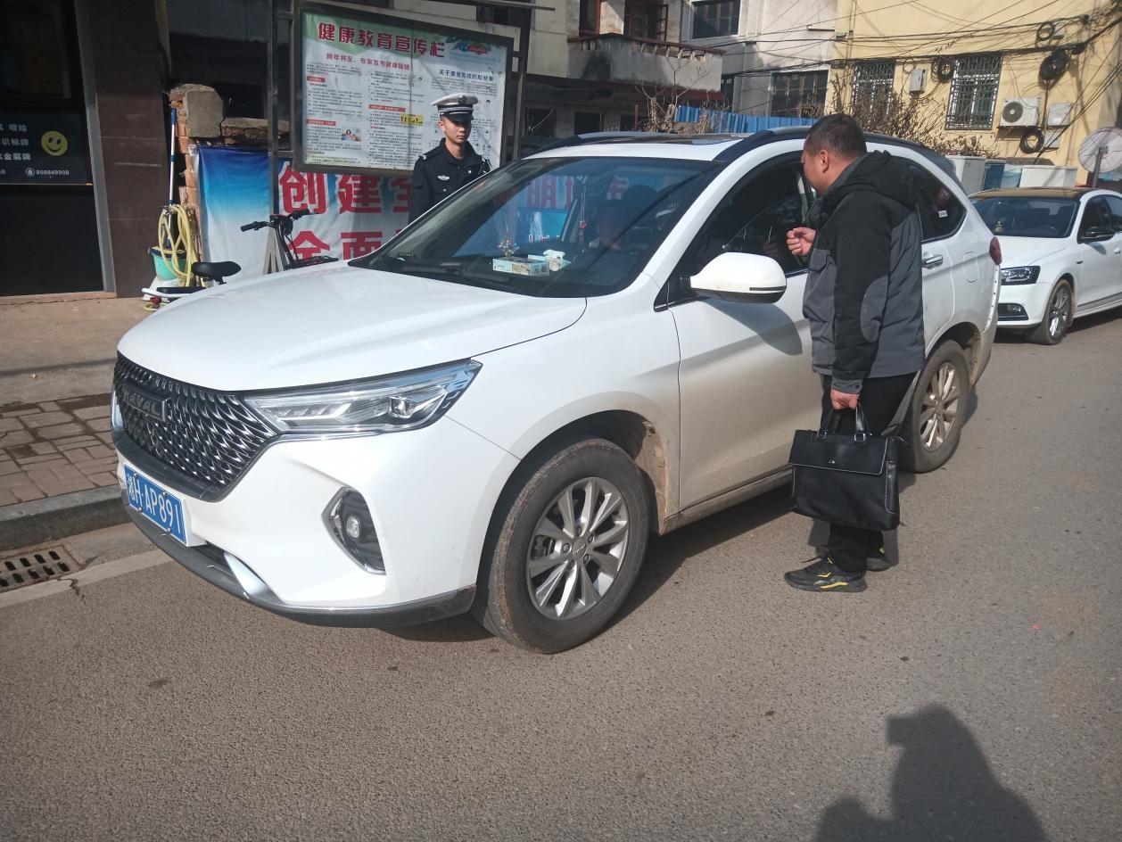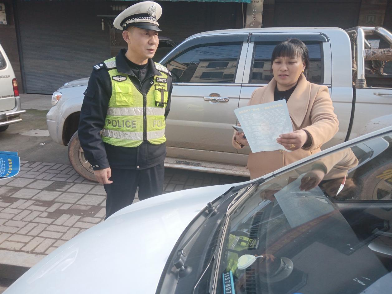 “同志,你好!根據《中華人民共和國道路交通安全法實施條例》第63條第一款之規定,人行橫道附近禁止停放車輛。”赫山區衡龍橋鎮開展春節道路交通專項整治的工作人員對停車的小轎車駕駛員說道。