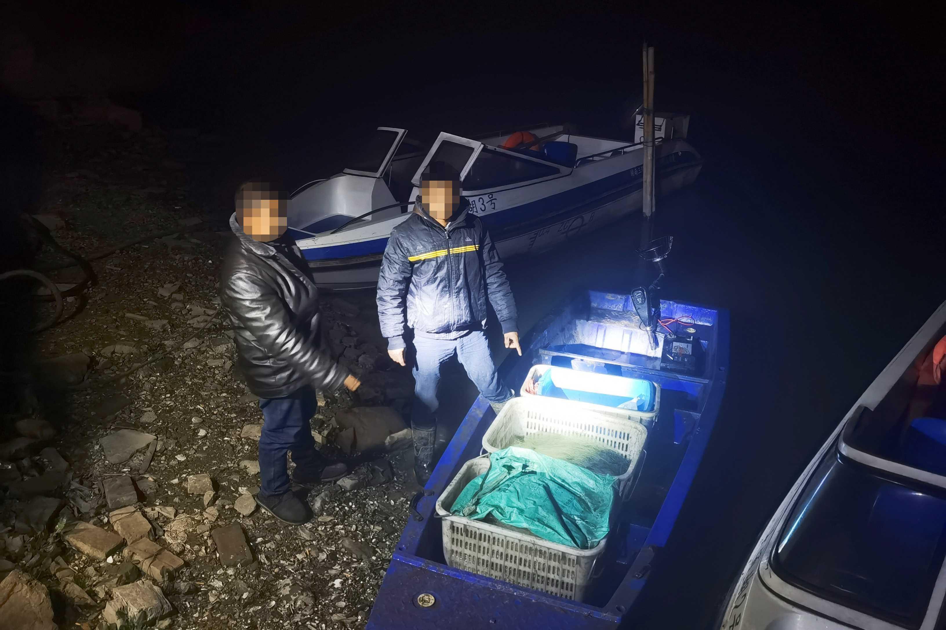 2022年1月16日21時許,益陽市公安局大通湖分局沙堡洲水陸派出所接到大通湖生態投資發展有限公司工作人員報警稱,有兩名男子駕駛一條電動馬達塑料漁船在大通湖水域金三角段撒網偷魚。接警后,沙堡洲水陸派出所民警立即駕駛警用快艇趕赴案發水域,現場查獲作案使用的絲網30余副、塑料漁船1條、電瓶2個。隨后,民警將涉嫌盜竊的蔡某、夏某華依法傳喚至公安機關接受調查。
