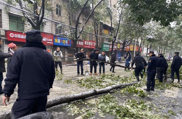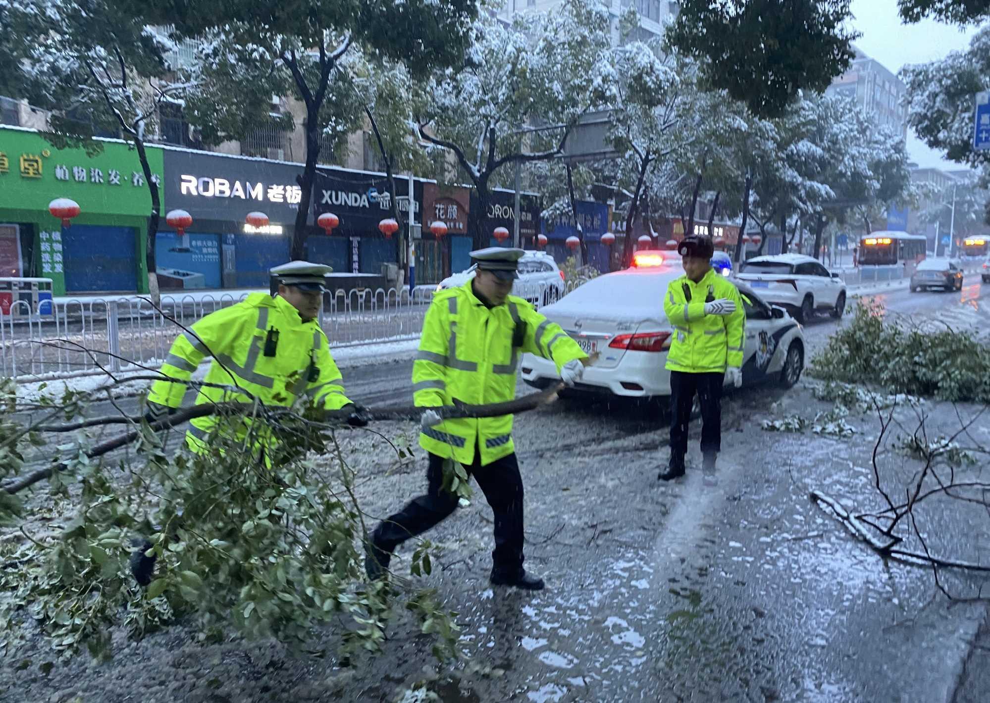 深夜,一場(chǎng)大雪如約而至。當(dāng)晚,市城管執(zhí)法局組織各片區(qū)大隊(duì)、風(fēng)貌帶大隊(duì)4支應(yīng)急隊(duì)伍上路清理倒伏樹(shù)木、鏟除路面積雪,確保主次干道暢通。