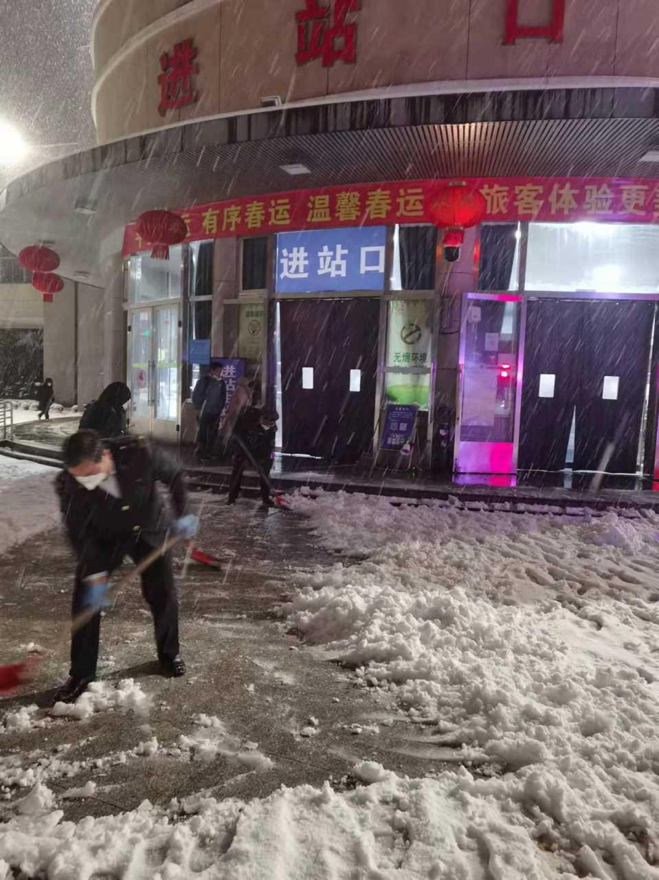 2月7日,凌晨5點(diǎn),益陽(yáng)火車(chē)站立即啟動(dòng)冰雪應(yīng)急響應(yīng),成立了打冰掃雪應(yīng)急隊(duì),開(kāi)展清雪掃除工作。