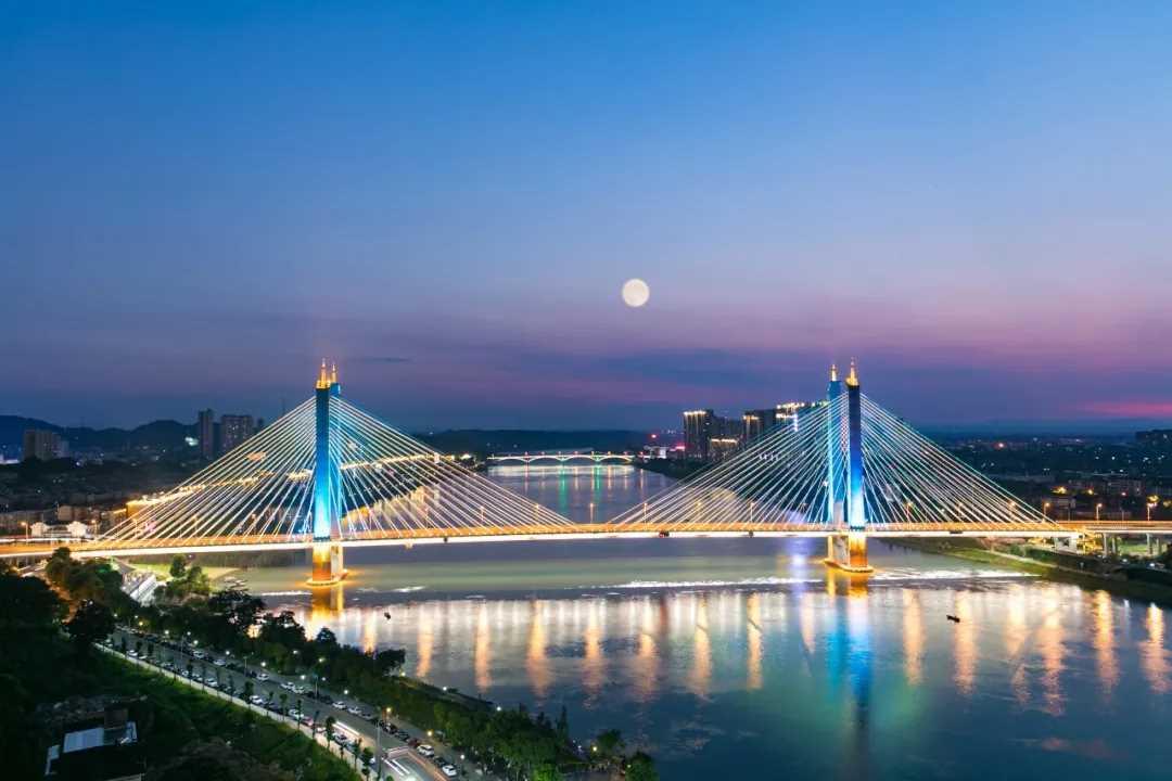 走在資江兩岸,西流灣大橋與明月遙相輝映,江風(fēng)習(xí)習(xí),抬頭一輪滿月當(dāng)空,低頭江中水波似星光,兩岸燈火散落江中,船動月影搖,側(cè)耳聽潮起。