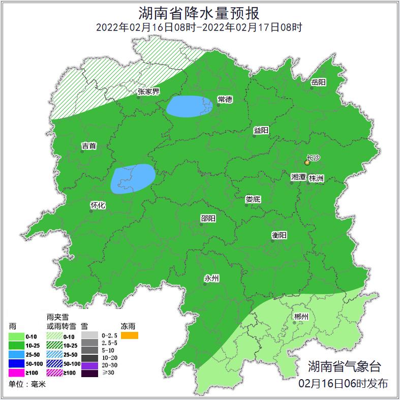 受西南暖濕氣流、切變線和冷空氣共同影響,16日至18日省內有一輪雨雪天氣,17日晚至18日白天為主要降雪時段,湘北部分地區有中雪,局地大到暴雪,湘西高海拔地區有冰凍;另外,17日湘中及以南局地有暴雨。19日至20日湘北天氣短暫好轉,其他地區降水持續,其中湘東南局地仍有大到暴雨。21日至22日省內自西向東還有一輪雨雪天氣,湘中及以北有雨夾雪或雪。具體預報如下: