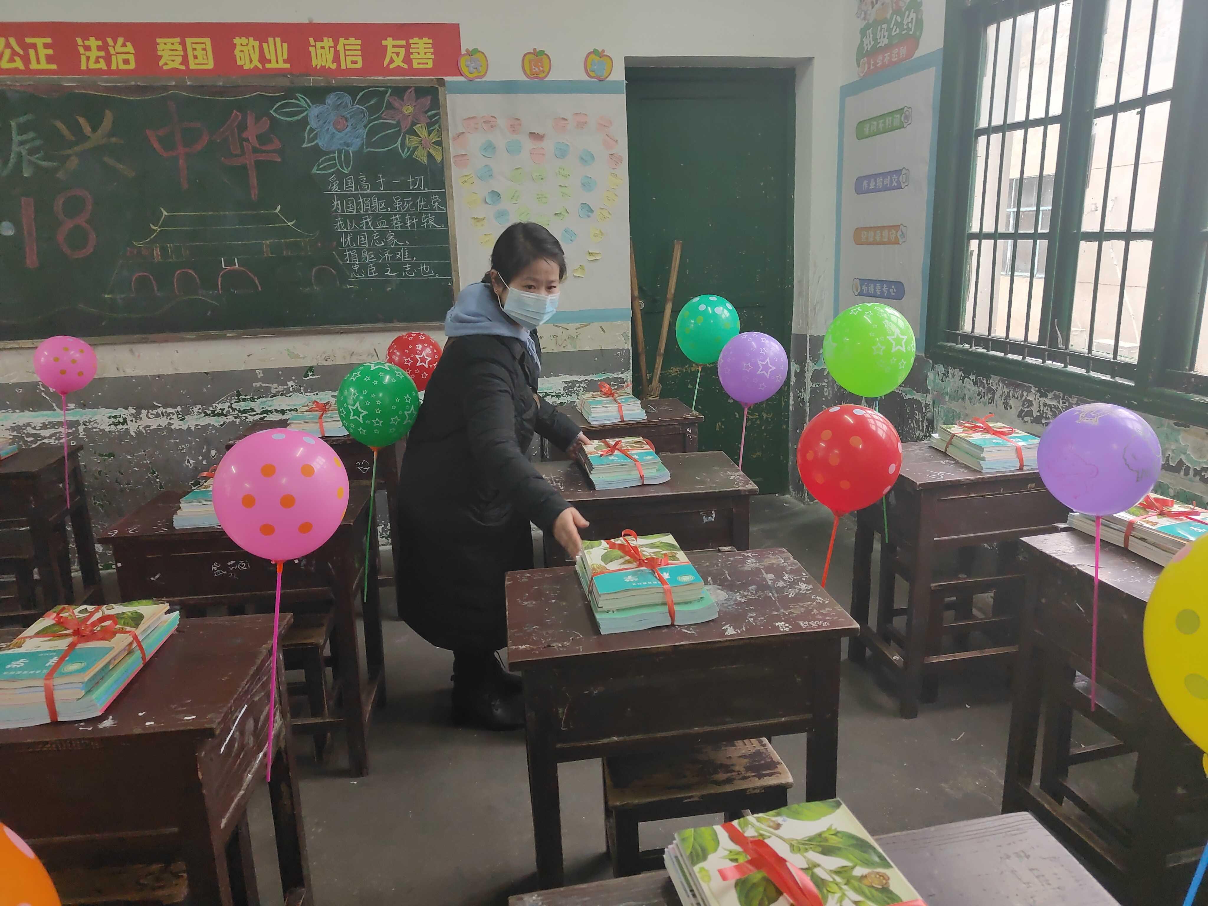 校園內,每位老師和其他工作人員也在為開學做好了充足的準備,有的教師擦拭門窗電扇,有的教師拿著拖把、掃帚、抹布打掃著校園內外的環境衛生,大家都盼望著安靜的校園恢復往日的生機和活力。在四年級教室里,每張學生的桌子上放著本學期要學習的課本,班主任劉洋精心包裝課本,并用彩帶扎上了蝴蝶結。教室內,每一張桌子旁放著一個彩色氣球,讓整個教室充滿喜慶與溫馨。“新的學期到了,我想,好的開始就是成功一半,希望孩子們在快樂中學習,在快樂中成長。”劉洋說。