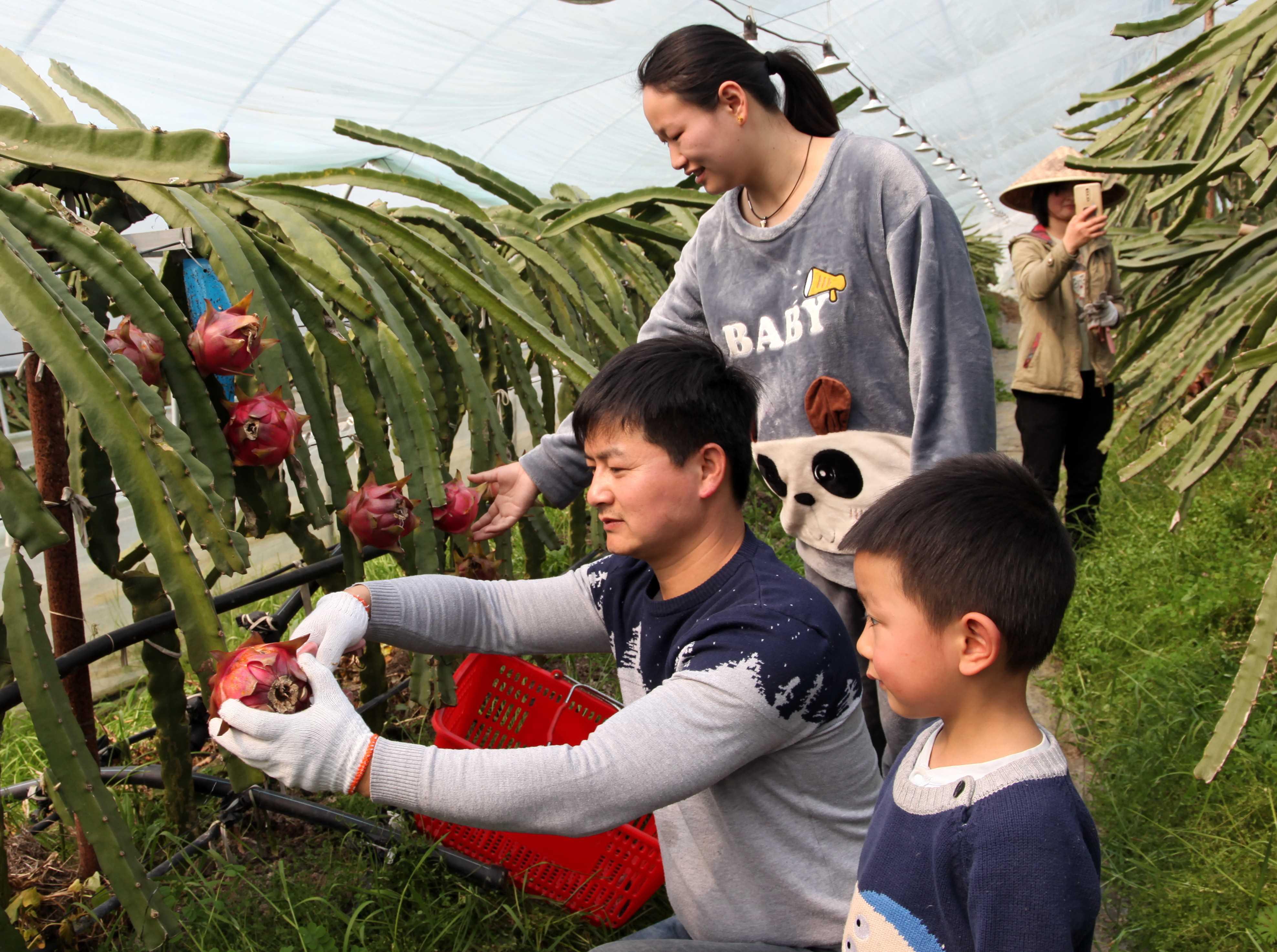 2月27日下午,益陽市赫山區(qū)龍光橋街道新月村村民徐兆明在為客戶釆摘自家種植的火龍果。