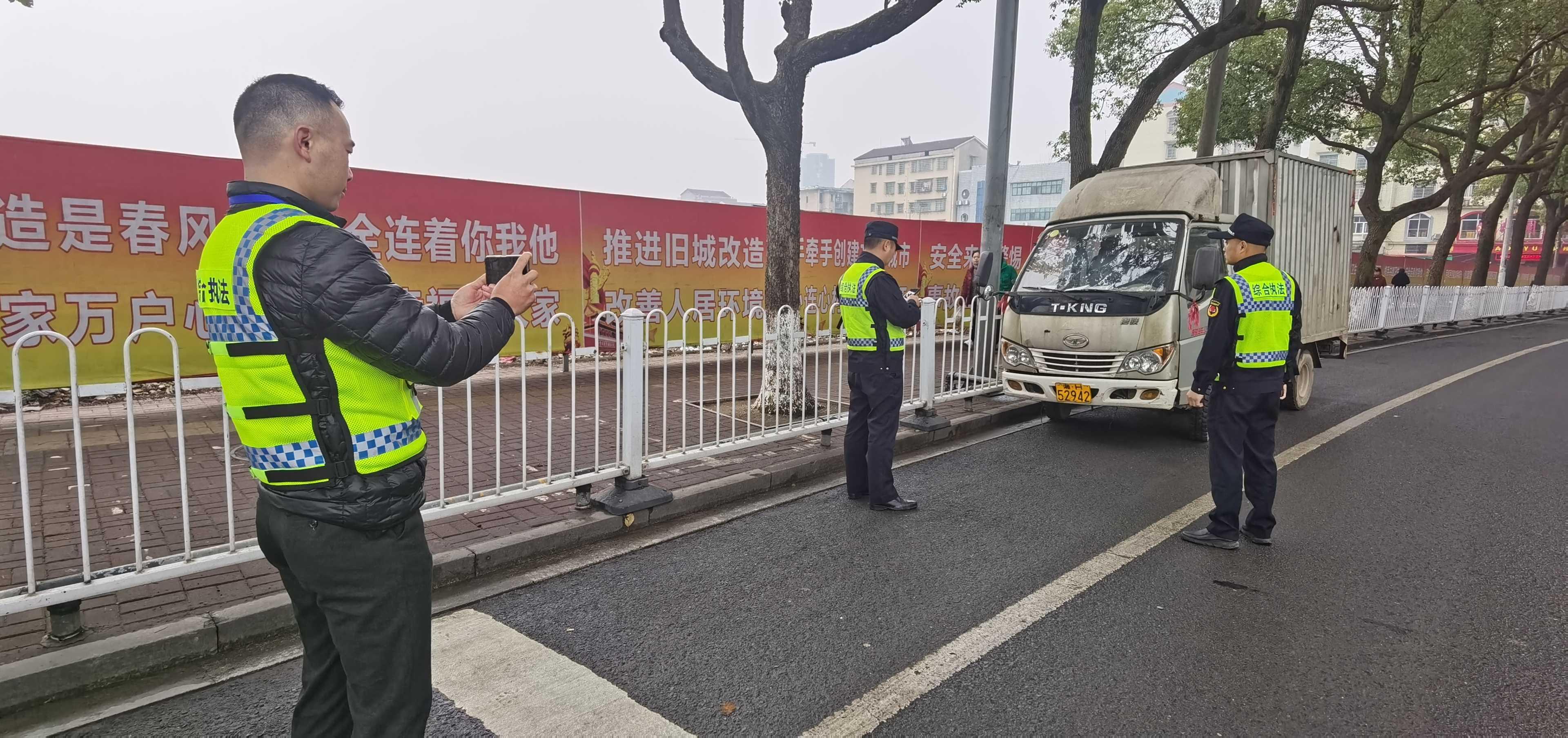 上午10:45,一輛牌照為湘H52942的貨車違規(guī)停靠在桃江縣城桃花路與獺溪路交匯處。執(zhí)法人員對該車的前、后、側(cè)三個不同方位拍照后,上傳到手機云慧拍系統(tǒng),再通過便攜式打印機,一張由桃江縣城市管理和綜合執(zhí)法局出具的違法停車告知單就出來了,執(zhí)法人員將告知單夾在駕駛室前方的雨刮器上,提醒車主在規(guī)定的時間里處理。