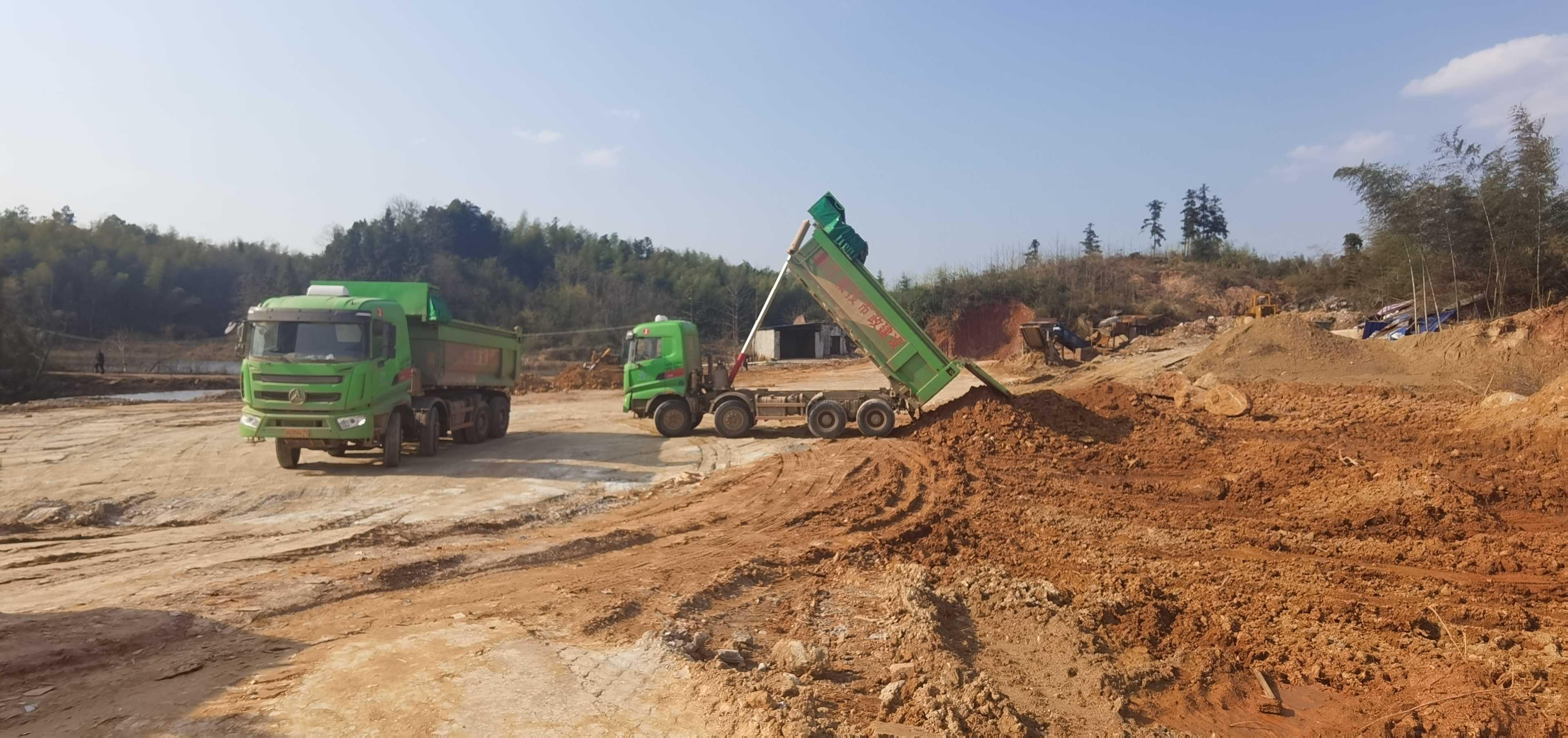 在縣城屈圃路(長竹西路-文明路)建設(shè)項(xiàng)目現(xiàn)場,數(shù)臺渣土運(yùn)輸車正在將土方運(yùn)往棄土場。屈圃路全長505米,寬30米,總投資870萬元,預(yù)計(jì)今年6月底竣工。