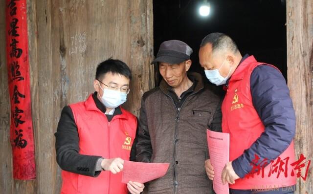 (3月20日,永順縣黨員志愿者在毛壩鄉團結村上門宣傳疫情防控知識。吳煉 肖大全 攝)