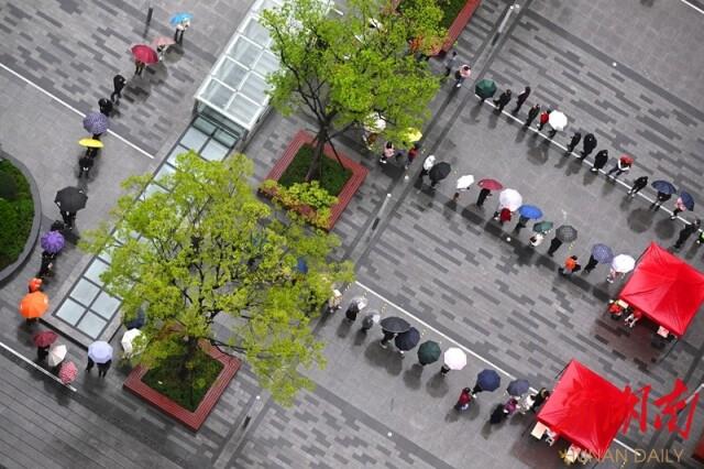 (3月21日上午,長沙市開福區望麓園街道荷花池社區,社區居民有序排隊接受核酸檢測采樣。湖南日報全媒體記者 郭立亮 攝)