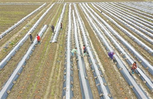 3月23日,道縣梅花鎮宜陽村,農民在田間覆蓋地膜。連日來,該縣一邊嚴密防控應對疫情,一邊鉚足干勁開展春耕生產。