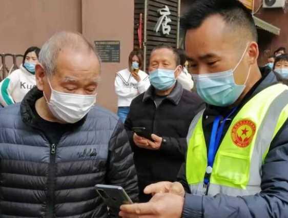 核酸檢測采樣點,退役士兵劉剛幫助老人打開健康碼