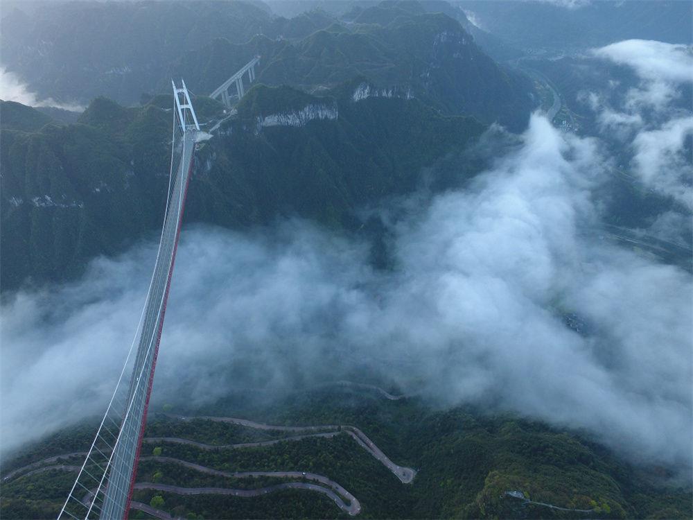起霧時(shí),乳白色霧氣籠罩橋面,車行其上,宛若“騰云駕霧”,矮寨大橋便因而有了一個(gè)浪漫的別稱:“云中天橋”。