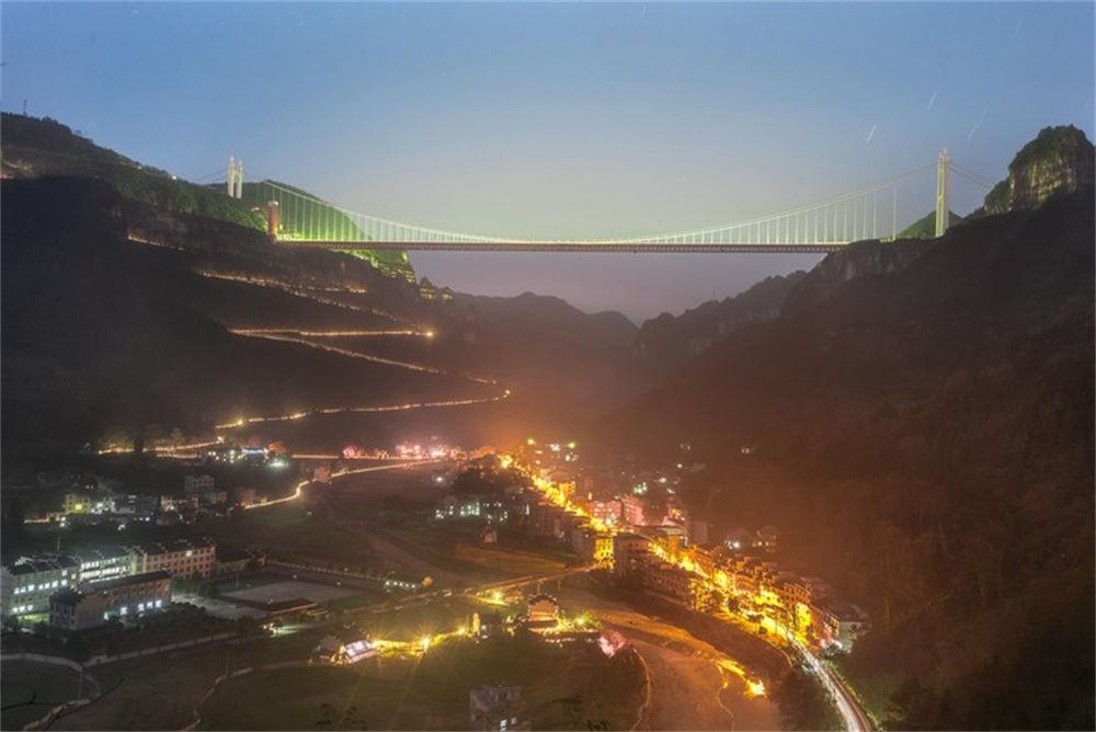 2016年12月5日拍攝的矮寨大橋夜景。新華社發(fā)(尚林 攝)