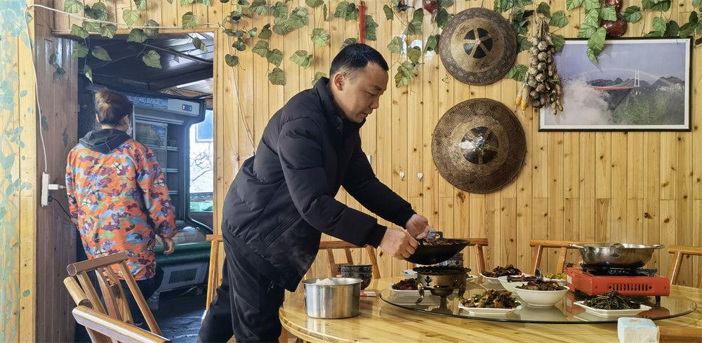 3月28日,幸福村的黃勇在“農(nóng)家樂(lè)”招待客人。新華社記者 趙眾志 攝