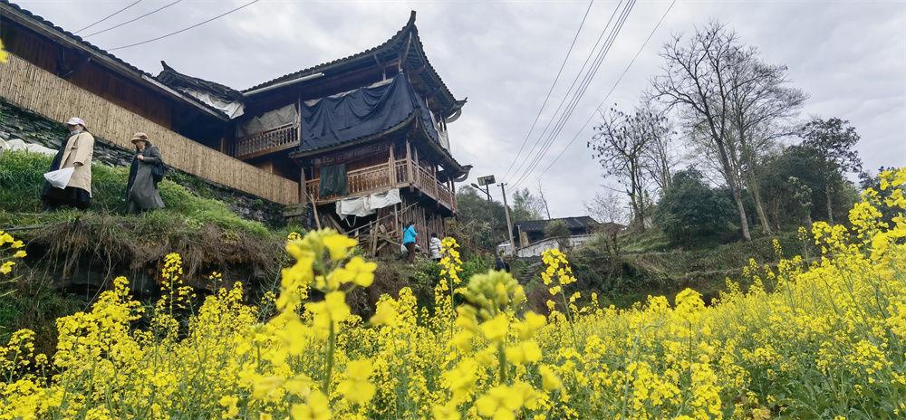 黃勇的新房子一蓋就是5層,一樓是餐廳,二樓全家人住,三到五樓有8間客房。參觀完大橋后,游客們?cè)诖謇锢^續(xù)游玩。黃勇說(shuō),一天招待七八桌客人是常事,旅游旺季里一天就有20多桌客人。