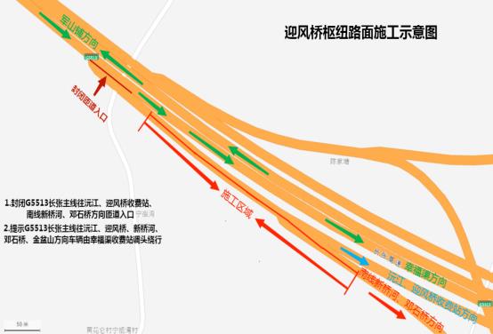 1.G5513長張高速常德往沅江、迎風(fēng)橋收費站、南線鄧石橋及金盆山方向車輛直行→幸福渠收費站調(diào)頭→長張高速常德方向→經(jīng)迎風(fēng)橋樞紐互通→沅江、迎風(fēng)橋收費站、南線鄧石橋及金盆山。
