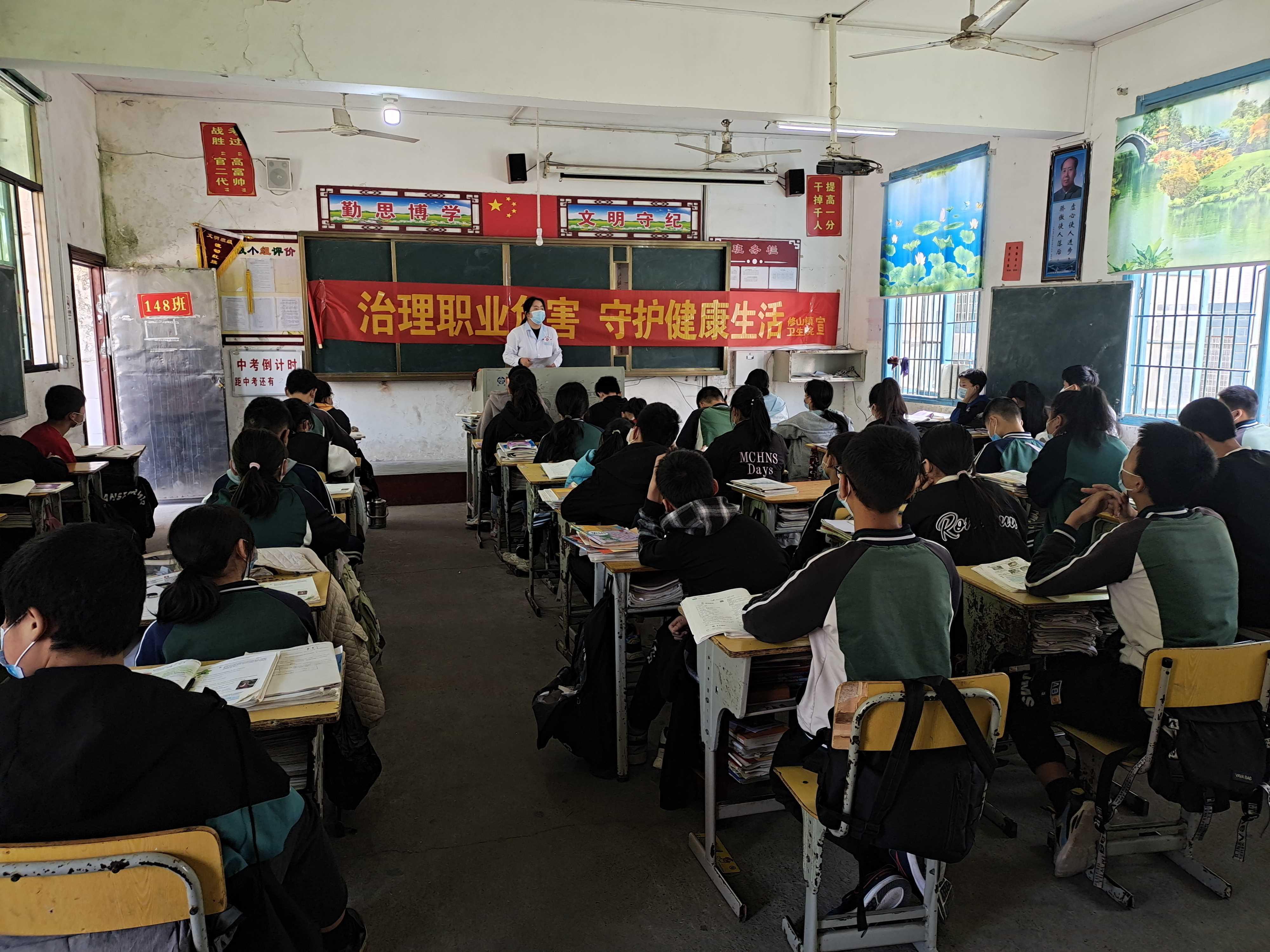 符醫生用通俗易懂的語言和學生互動交流的方式,深入淺出地給在場師生上了一堂形象生動、實用性非常強的健康課。詳細講解了瘧疾的發病癥狀、傳播途徑等知識,特別強調了瘧疾的臨床表現,使學生能夠在生活中更好的對瘧疾做出病癥判斷。講座中重點講解了農村學生身邊常見的職業病——農藥中毒,詳細介紹了預防農藥中毒的方法,著重演示了發生農藥中毒后應該如何進行急救。