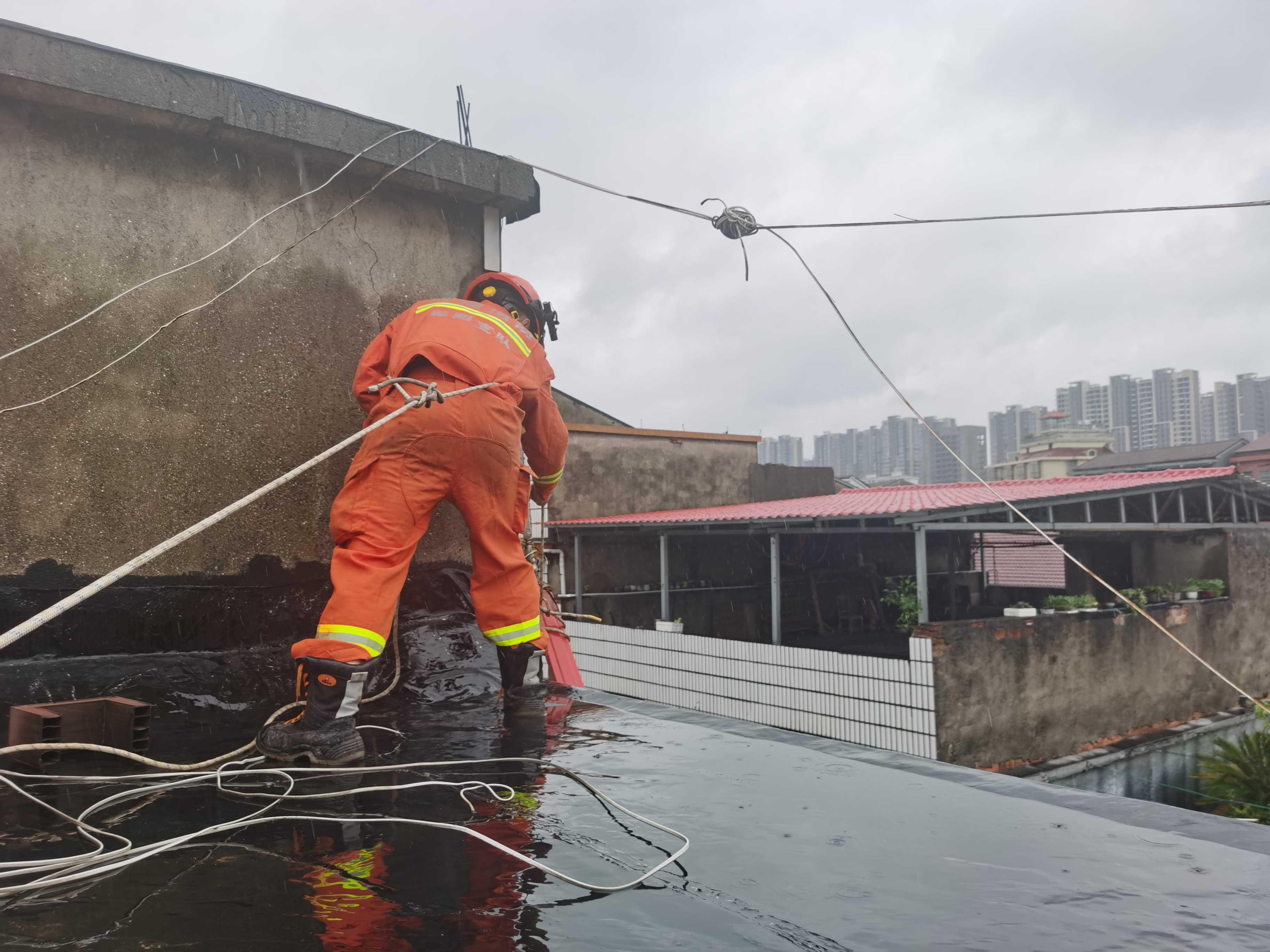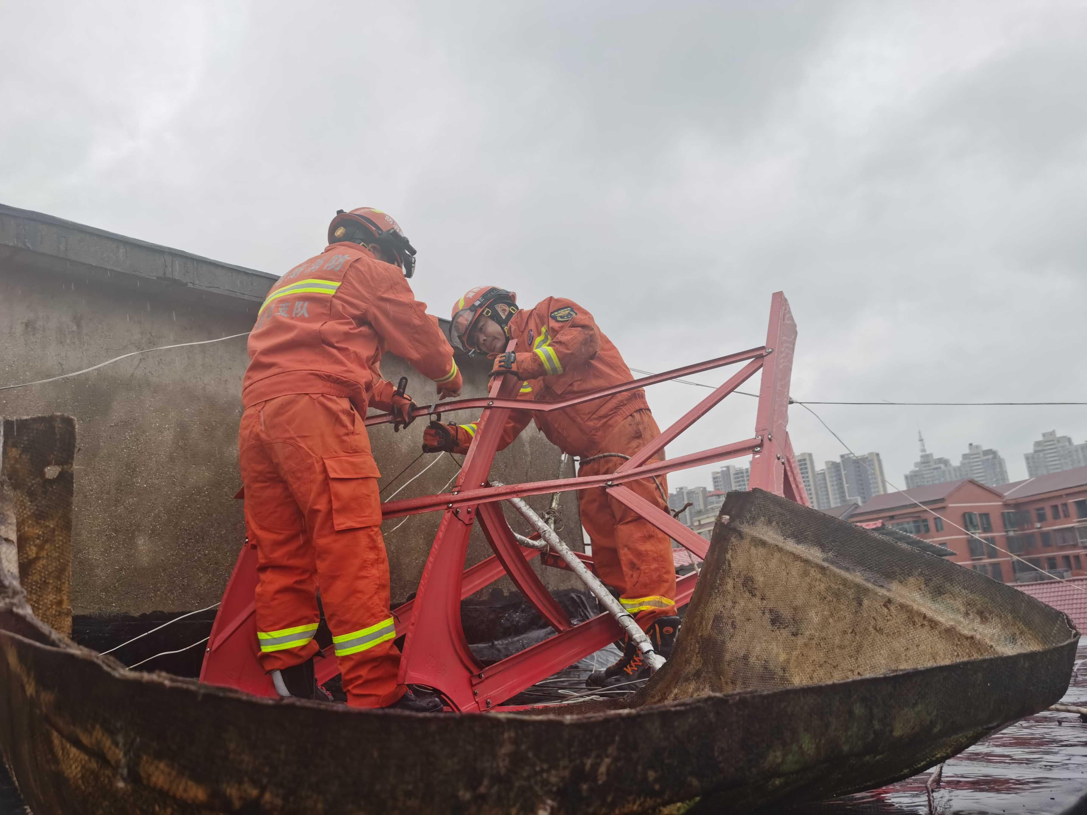 “我們到達現場發現,由于突然降溫,大風將這棟建筑物樓頂的一個太陽能聚熱板架子吹翻,幸好被旁邊的水管卡住,沒有掉落下來,但是狂風暴雨,隨時可能掉落砸向過往行人和車輛,非常危險!”。據參與救援的資陽區消防救援大隊消防救援人員陶震介紹,為了消除安全隱患,他們先是在樓下進行警戒,防止行人經過被墜落物砸傷,而后來到該建筑物樓頂實施救援。經過現場偵查后,2名具有豐富戰斗經驗的消防員使用安全吊帶、安全繩等救援裝備,在戰友們的幫助下,小心翼翼地爬至外墻邊,利用繩索固定好支架,合力將其提起。經過半個多小時的緊急救援,安全隱患被成功排除。