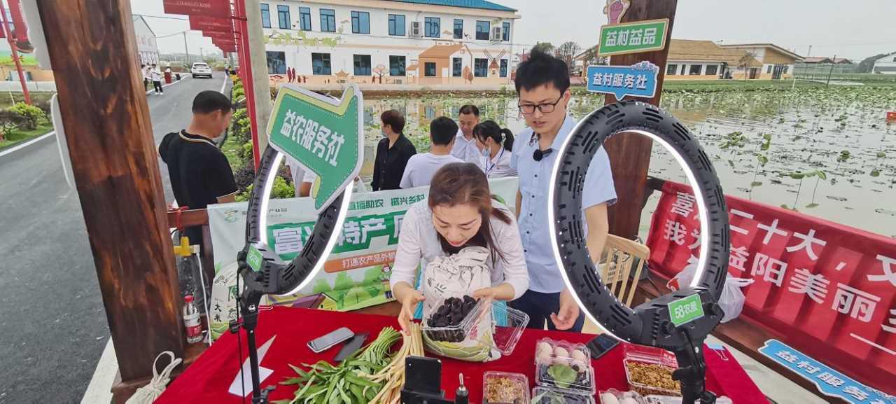 4月28日,2022年益陽市春季鄉村文化旅游節開幕式暨鄉村振興流動現場會舉行。益陽58農服黨支部在分會場資陽區沙頭鎮富興村開展助力農產品上行直播活動,貢獻互聯網企業的一份力量。