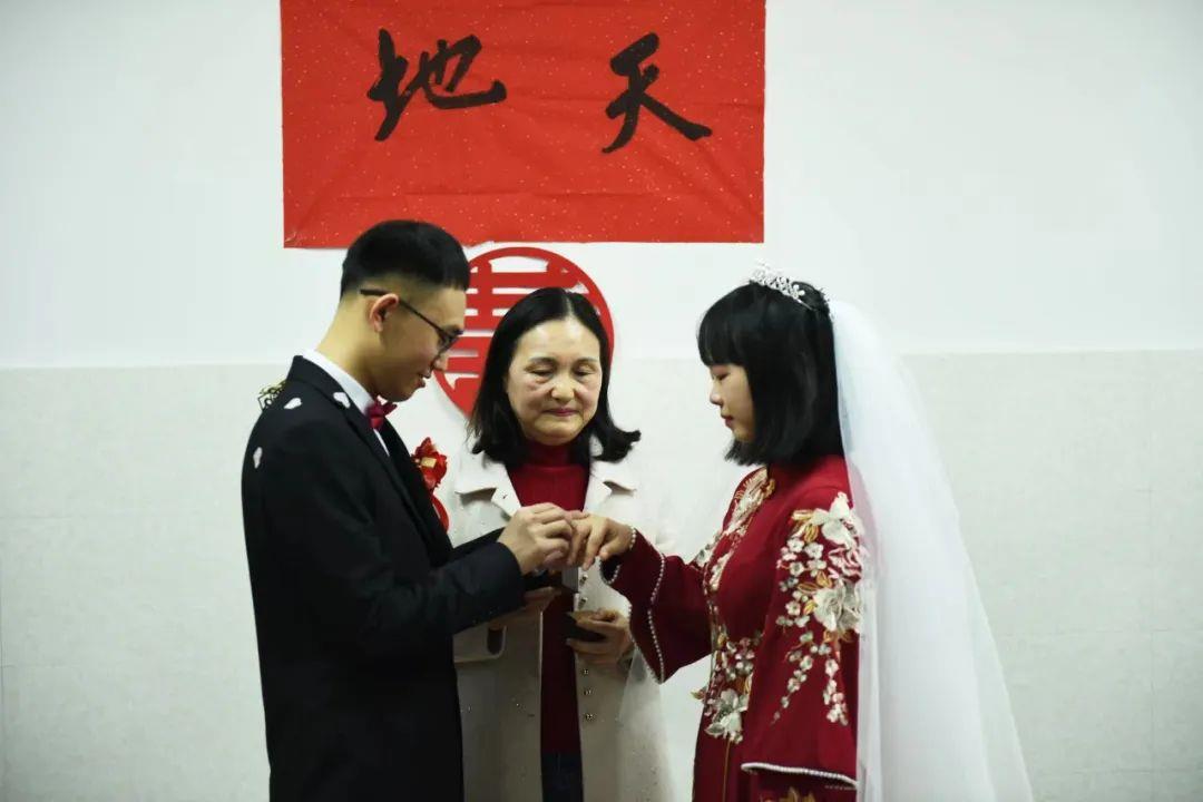 婚禮儀式選定于4月16日11時6分開始。現場布置得溫馨而雅致,龍浪客串主持人,徐朝暉擔任證婚人。拜過天地后拜父母,通過視頻連線,當4位生命中至親的人出現在屏幕上時,這對新人眼含淚花,向他們深深拜了下去。“祝福你們,夫妻恩愛,白頭偕老……”父母為他們送上了最真的祝福,新人早已眼含淚花,連連回應,“爸爸媽媽,因為特殊的原因,雖然你們無法前來參加我們的婚禮,但你們的愛從不缺席,謝謝你們。我們一定彼此珍惜,攜手同行!”這天,在天津老家,新郎的父母準備了酒席,代替這對新人向賓客敬酒。