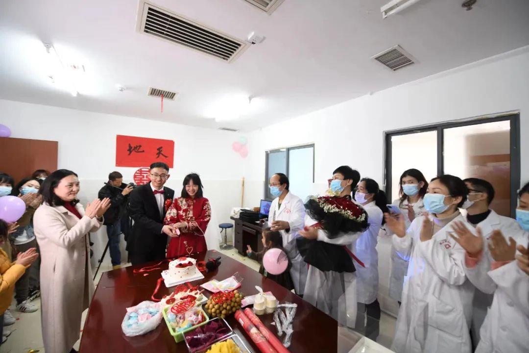 鐘情和劉穎潔是同事,因年歲較她大,工作中以師生相稱,生活中又親如姊妹,是對“忘年交”。4月8日,午休時,劉穎潔無意中說起為婚禮發愁的事,說者無意,聽者有心。她迅速向科室主任徐朝暉匯報了情況,大家商議后,決定在嚴格做好疫情防控同時,給他們一個特別的婚禮。