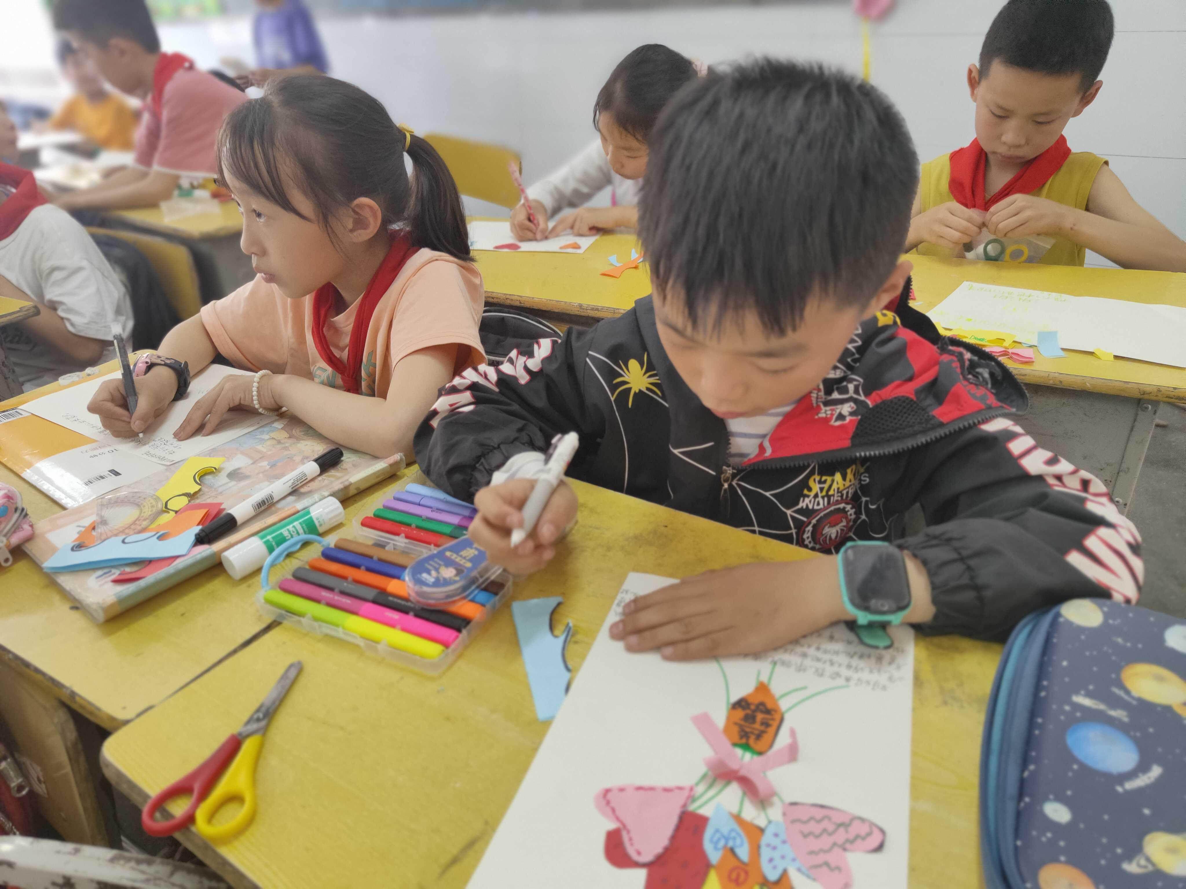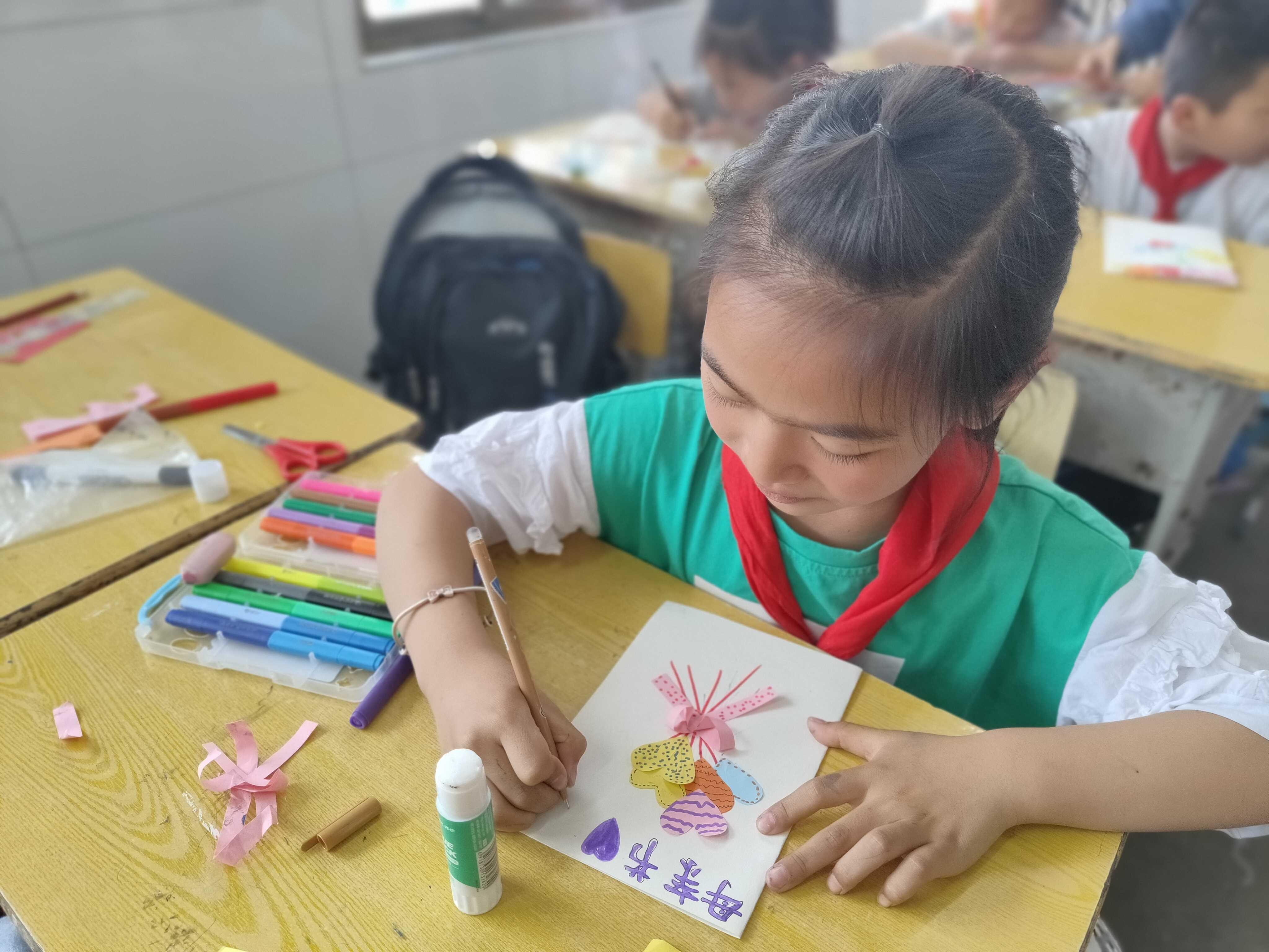 “同學們,本周日就是母親節了,你們想好了送什么給媽媽了嗎?今天小于老師就教大家做一張漂亮的立體愛心花束賀卡吧!”5月7日,走進高新區謝林港鎮學校1901班教室,手工課教室于夢玲老師正在教孩子們制作送給母親的禮物。
