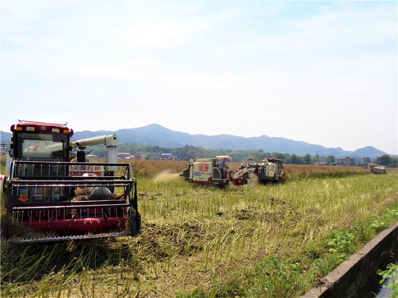 石牛江鎮小坡頭村是桃江縣嚴管區產業結構調整的核心示范片,也是該縣油菜種植的重點區域,種植面積達11000畝。伴隨著機器的轟鳴聲,一排排油菜卷入收割機。這些收割機在自動完成油菜脫粒后,油菜果殼和部分油菜稈被收割機碾成碎片,直接拋灑還田,可以有效增加土壤的肥力。“我們昨天開始收油菜,除了我自己的5臺收割機外,還從河南省汝南縣瑞通農機合作社調過來5臺收割機搶晴天收割油菜。”望著從3臺收割機里傾瀉而出的油菜籽,南縣昱晟紫云英種植專業合作社負責人郭賽魁喜滋滋地說道。“我今年的油菜長得好,畝產有280到300斤左右,昨天來收的油菜籽價格是3.4元一斤,加上春季賣掉了13萬元油菜苔,毛收入應該上了900元每畝。”