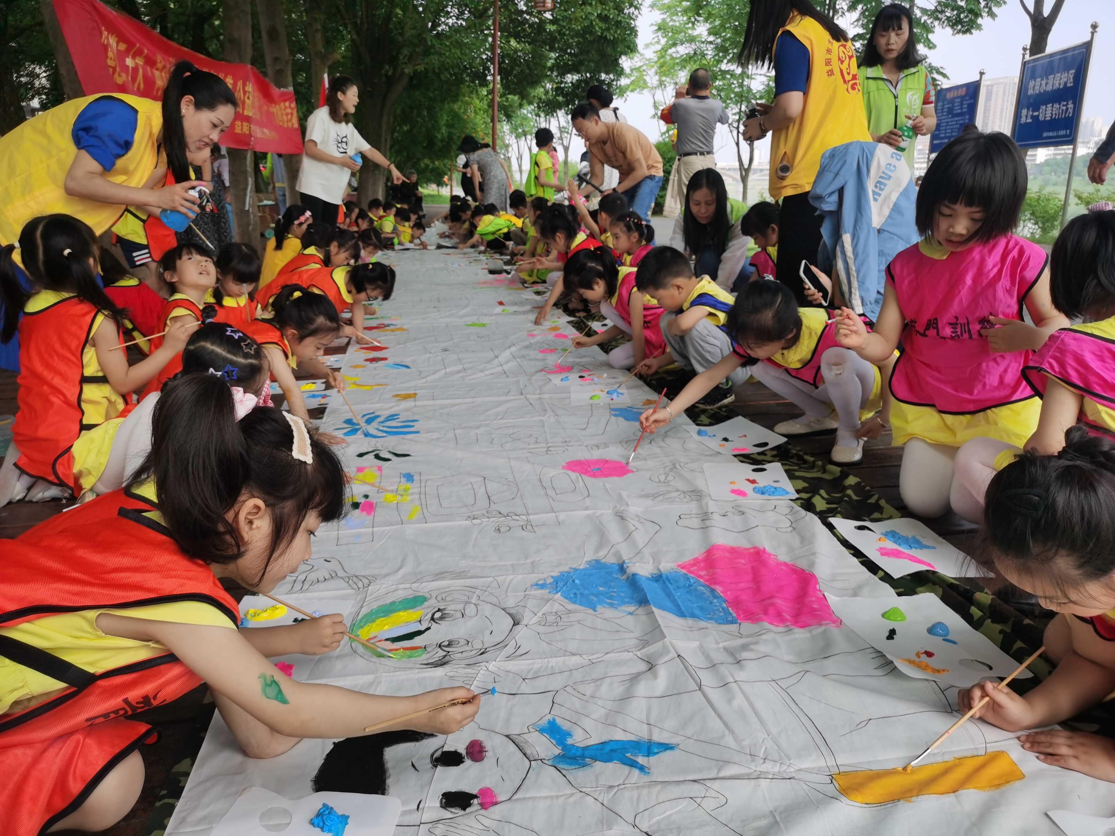 活動當天,100名兒童和20名社工、志愿者匯聚資江河畔,用手中的畫筆在十米長卷上揮毫潑墨,用色彩點燃愛國情懷,充分發揮自己的想象力,畫出心中對二十大的期盼、對祖國的祝福。通過形式新穎、多元參與的繪畫活動,讓孩子們深受鼓舞。