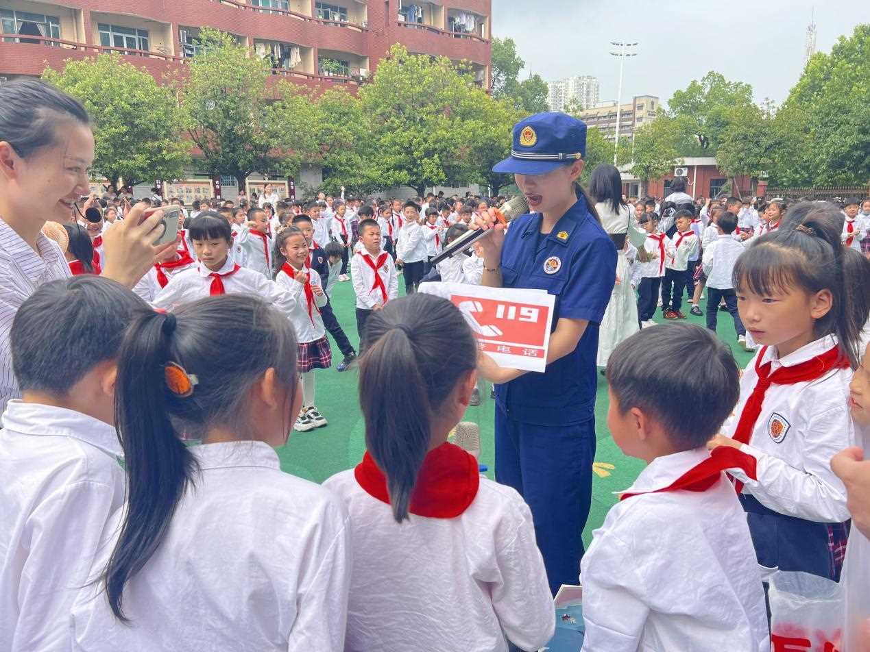 培訓中,消防宣傳員針對小學生年紀小、好奇心強、知識面偏窄又活潑好動的特點,通過講故事、猜謎語、有獎問答等方式,用通俗易懂的語言向小朋友詳細講解了火災(zāi)的危害,以及如何正確撥打“119”火警電話、火場逃生自救知識等消防安全常識,提醒并要求小朋友不玩火、不動電。隨后,又通過看圖識消防設(shè)施、器材的方式,讓小朋友們一一回答問題,以此加深印象,現(xiàn)場的小朋友們都非常積極踴躍地回答問題,氣氛十分熱烈。為激發(fā)小朋友們學習的積極性,消防宣傳員還給回答問題的小朋友們送上精美的筆記本和筆作為獎勵。隨后,還現(xiàn)場進行了滅火實操,并邀請了部分老師進行實操演練,切實掌握撲救初期火災(zāi)的能力。