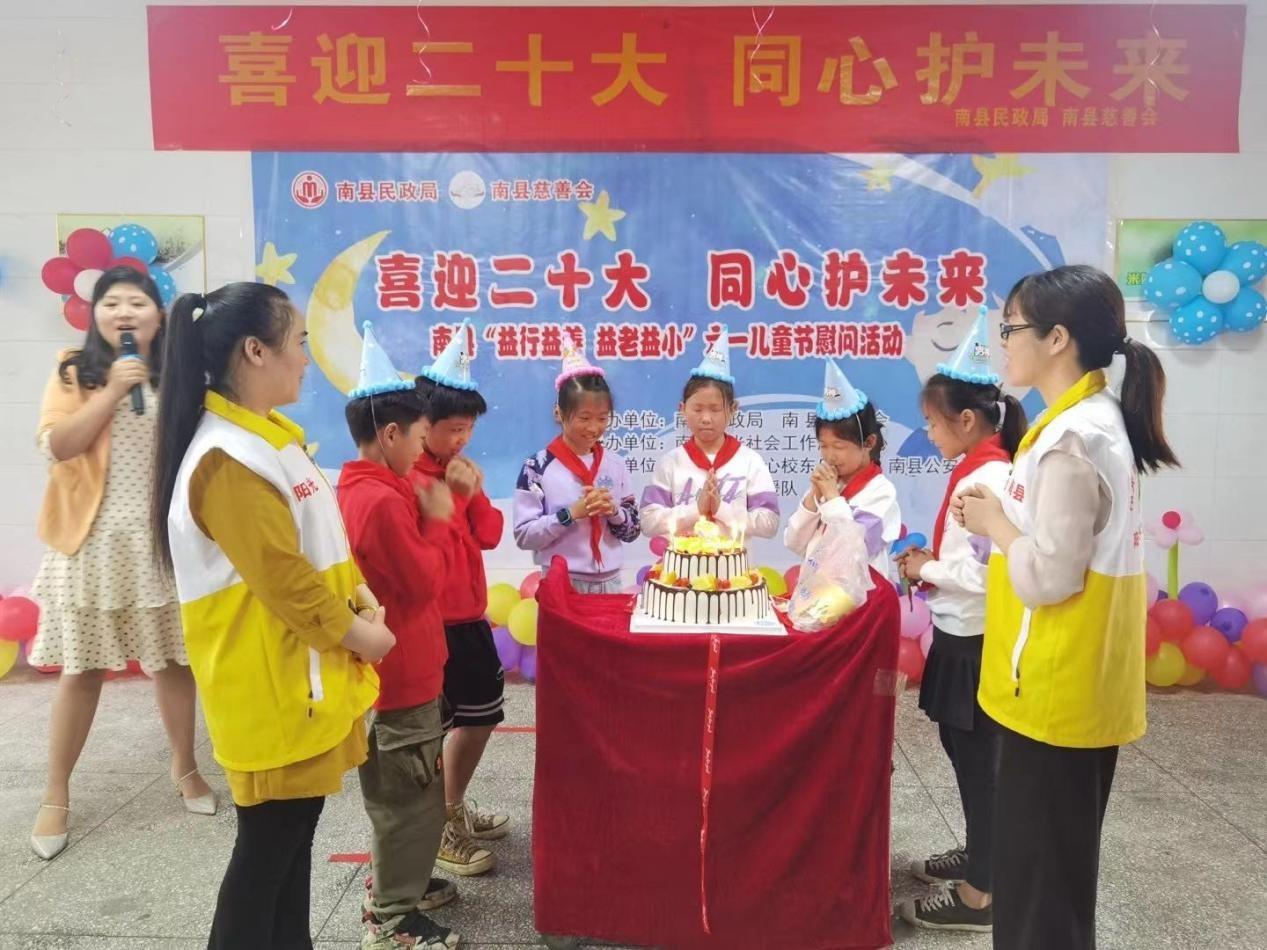 社工志愿者們還為在6月過生日的小朋友舉行了一場集體生日會。大家一起唱生日歌,一起吃生日蛋糕,把整個活動推向了高潮。