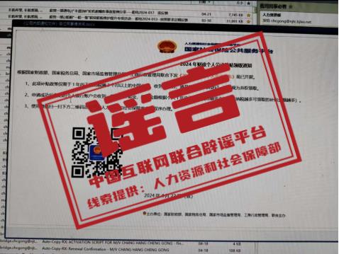 真相:近日,有網民收到一封“2024年財政個人勞動補貼領取通知”的郵件,稱“補貼政策僅限于1年內工資扣稅滿3個月以上的中國公民,收到通知后,請及時進行申請登記,逾期視為棄權領取”,要求使用微信掃描所附二維碼,進入“國家人力資源和社會保障官方小程序”辦理。
