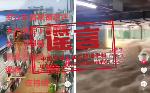 7月28日,某短視頻平臺出現(xiàn)兩段視頻,一段是城市街道被洪水淹沒并配文“郴州版城市取經(jīng)”的視頻;另一段是暴雨過后在積水中抓魚并配文“友友們來東江撿魚吧”的視頻。經(jīng)湖南郴州網(wǎng)信部門核實,相關(guān)視頻系網(wǎng)民惡意拼湊,郴州并未出現(xiàn)視頻所述情況。網(wǎng)信部門已將謠言線索移交公安部門依法處置。2.郴州資興市黃草鎮(zhèn)暴雨導(dǎo)致多名人員遇難?